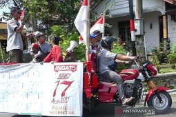 Panitia pemungutan suara (PPS) Desa Karangtejo, Kedu, Kabupaten Temanggung, Jawa Tengah, Minggu, melakukan sosialisasi Pemilu 2019 dengan cara unik, yakni berkeliling desa dengan menggunakan kendaraan roda tiga. Panitia ...